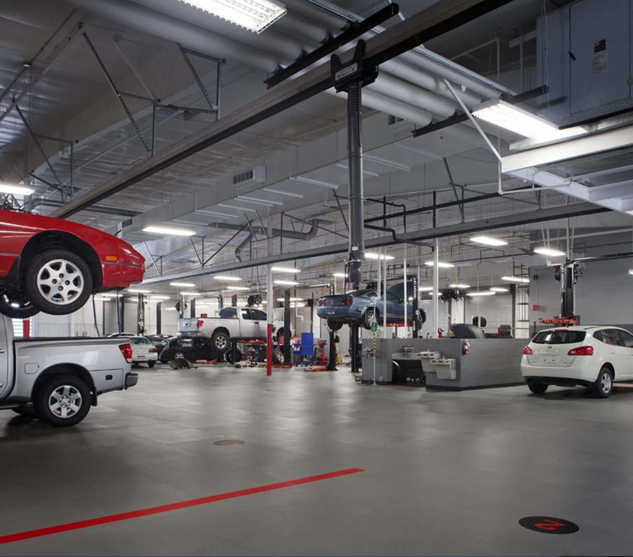 Renovation of Nissan auto dealership by Cangelosi Ward General Contractor.